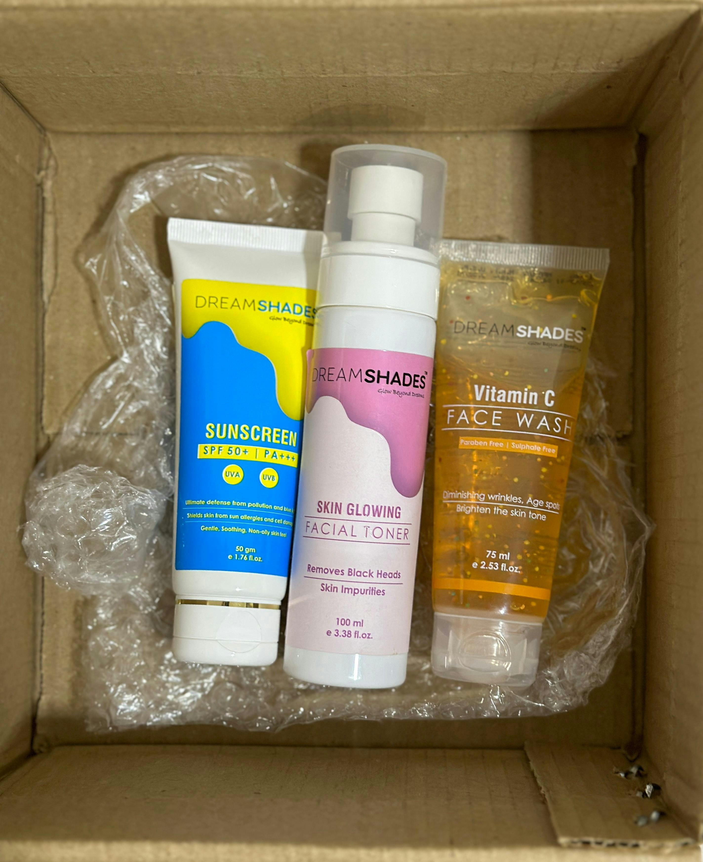 Vitamin C Facewash ( 75 ML ) + Skin Glowing Facial Toner ( 100 ML ) + Sunscreen SPF 50( 50 GM )