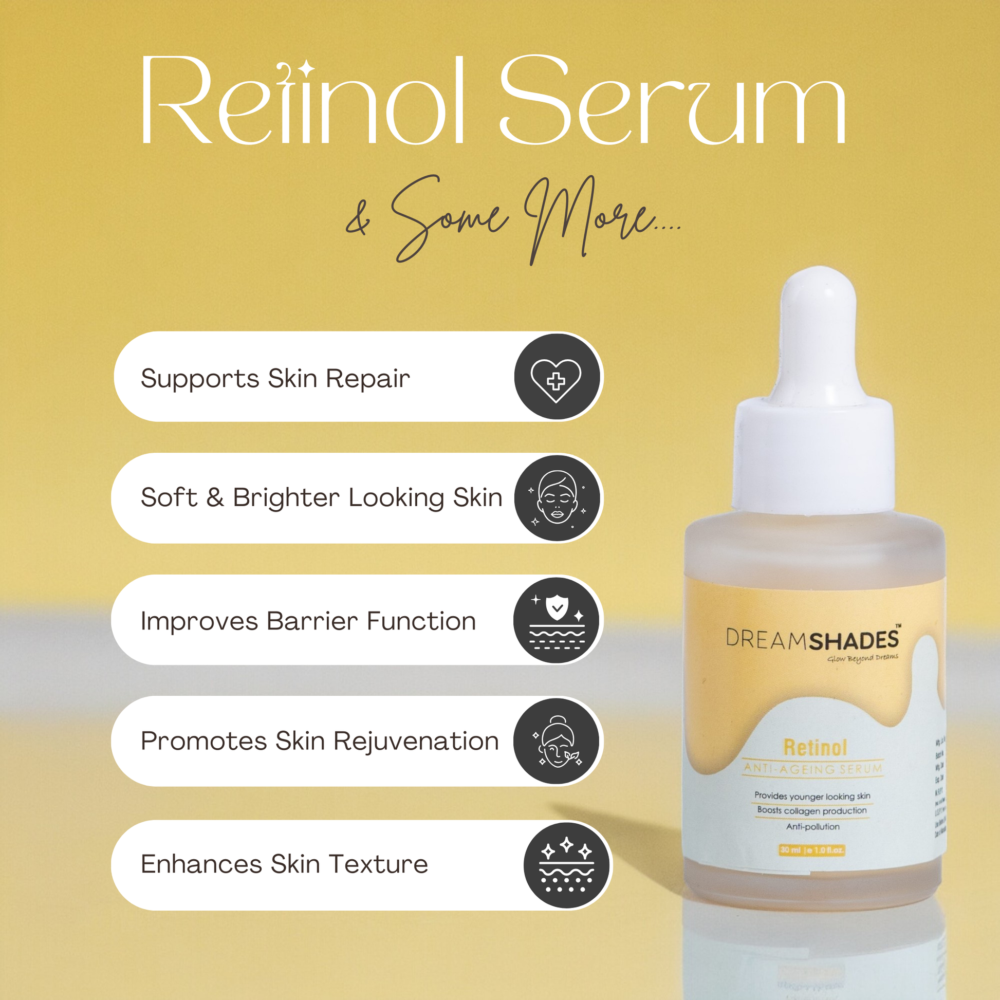 Embark on a journey to unveil your skin's true potential with our retinol serum, meticulously formulated with a fusion of potent ingredients. Serum is a blend of nature's gifts and cutting-edge science, crafted to restore and rejuvenate your complexion.